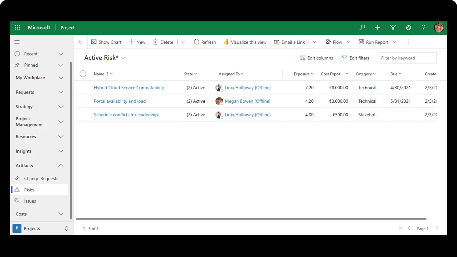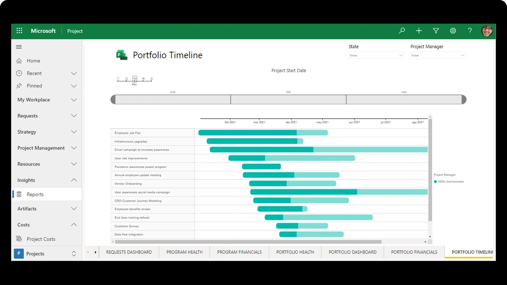 Plan, control and coordinate projects and portfolios in one centralized hub in the cloud, from anywhere, by using tools such as dashboards, charts, reports and schedules.