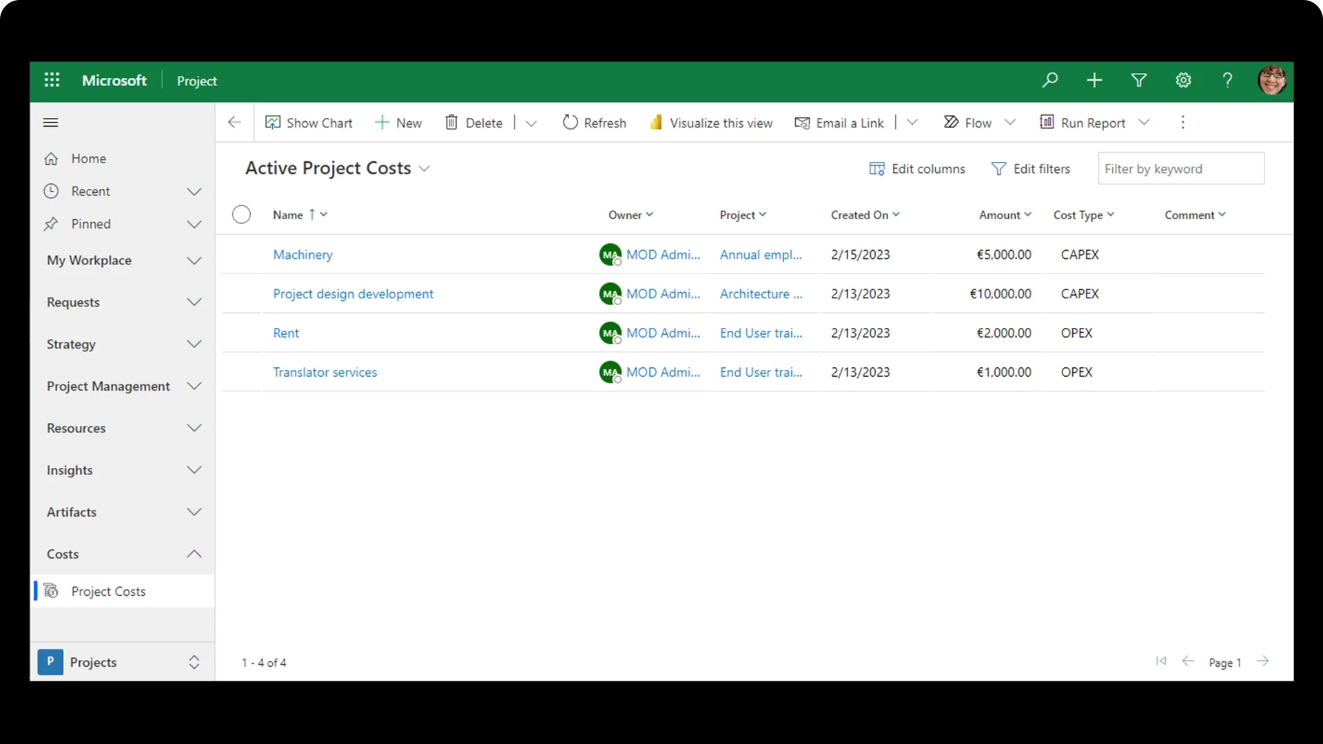Costs are also tracked in the Project record solution to keep track of cost and expenses. Get powerful financial reports to make better decisions.